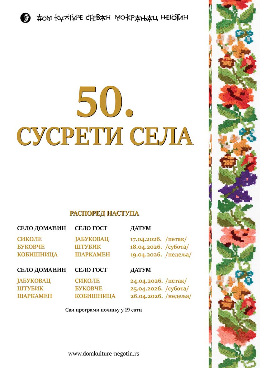 Четврта седницa Скупштине општине Неготин одржаће се у великој сали Скупштине општине Неготин са почетком у 10,00 часова, дана 26.03.2026.год.